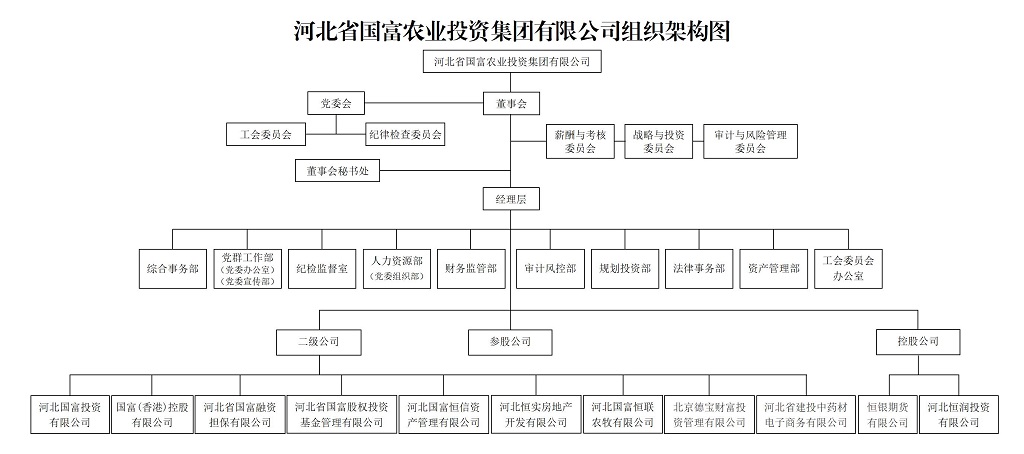 河北省國富農(nóng)業(yè)投資集團(tuán)有限公司成立于1992年,前身為河北省經(jīng)濟(jì)開發(fā)投資公司。2001年11月,經(jīng)河北省人民政府批準(zhǔn),重組設(shè)立為河北省國富農(nóng)業(yè)投資集團(tuán)有限公司,注冊(cè)資本3.34億元。2017年3月,按照省政府安排全面劃轉(zhuǎn)至省國資委管理,是河北省國資委授權(quán)的競(jìng)爭類國有資產(chǎn)授權(quán)經(jīng)營機(jī)構(gòu)。2024年7月,經(jīng)省委、省政府同意,省國資委決定將河北國富投資劃轉(zhuǎn)至河北建投集團(tuán)管理。
