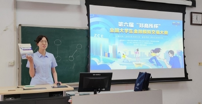 隨后,投資咨詢部分析師王大元為學(xué)生介紹了第六屆鄭商所杯模擬交易大賽,講解了期貨交易過程中出現(xiàn)的“加倉”“鎖倉”等概念,并對如何使用交易軟件進行了重點解讀,引導(dǎo)同學(xué)們在官網(wǎng)學(xué)習(xí)專區(qū)進行學(xué)習(xí),鼓勵同學(xué)們踴躍參賽,爭創(chuàng)佳績。