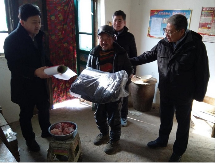 2020年1月8日,國富投資集團(tuán)黨委副書記韓繼普、副總經(jīng)理邸智彬帶領(lǐng)黨員志愿者,驅(qū)車兩個(gè)多小時(shí),來到保定市唐縣北店頭鄉(xiāng)西同龍村,開展春節(jié)前夕送溫暖活動(dòng),將暖暖情誼和深深祝福送給貧困戶。